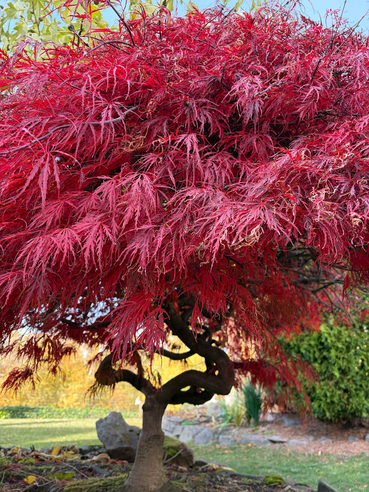 Japanese maples grow very slowly. I have one in my garden. For now, it is a magic umbrella-shaped house, perfect for small ones to huddle under and enter into their own imaginary world.