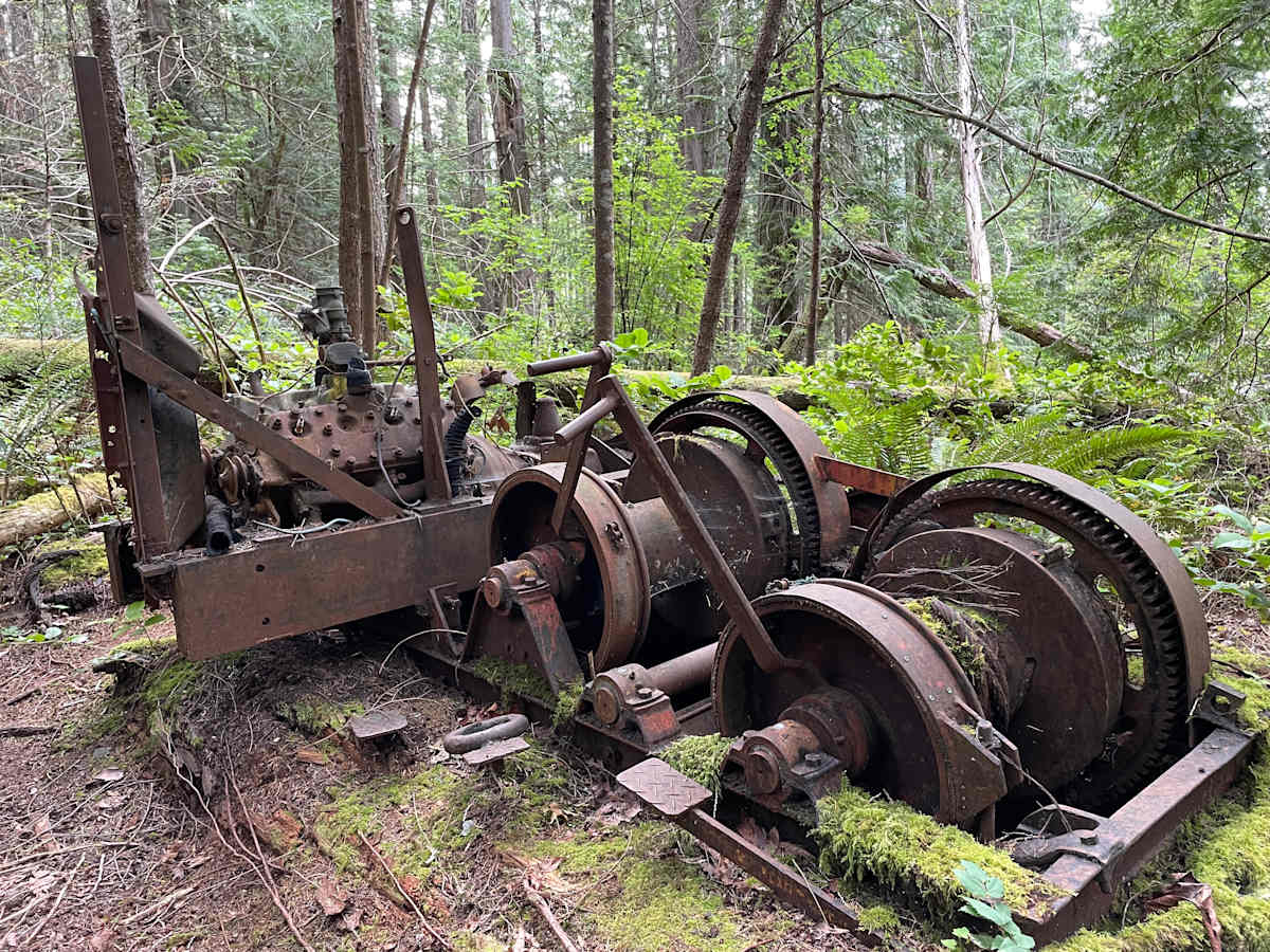 The original trees were enormous. I found one section of an old-growth tree on my hike. Maybe 15 feet tall, about twenty five feet in diameter. To move it would have taken a team of animals. This Mechanical Donkey must have seemed a godsend, and been very expensive. To see it abandoned in a silent forest made me think about all the people whose livelihoods depended on it. I picture the loggers as tough redheads, kind of like skinny Edmonton Oilers in plaid wool shirts. What would they think to see this engineering marvel rusting here?